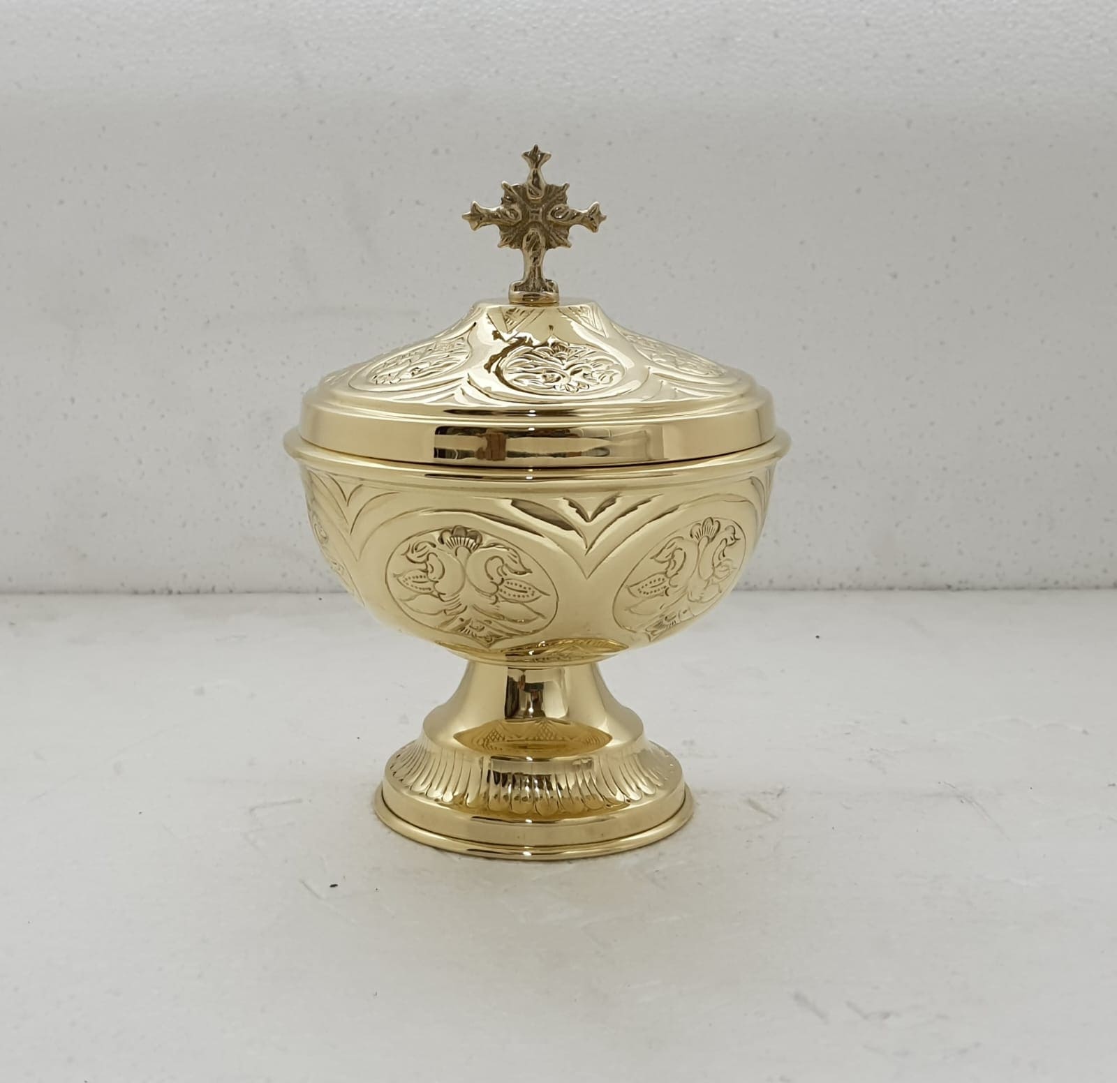Copón bajo de Latón de 20,3 cm de alto la base 6,9 cm y la copa 11 cm.