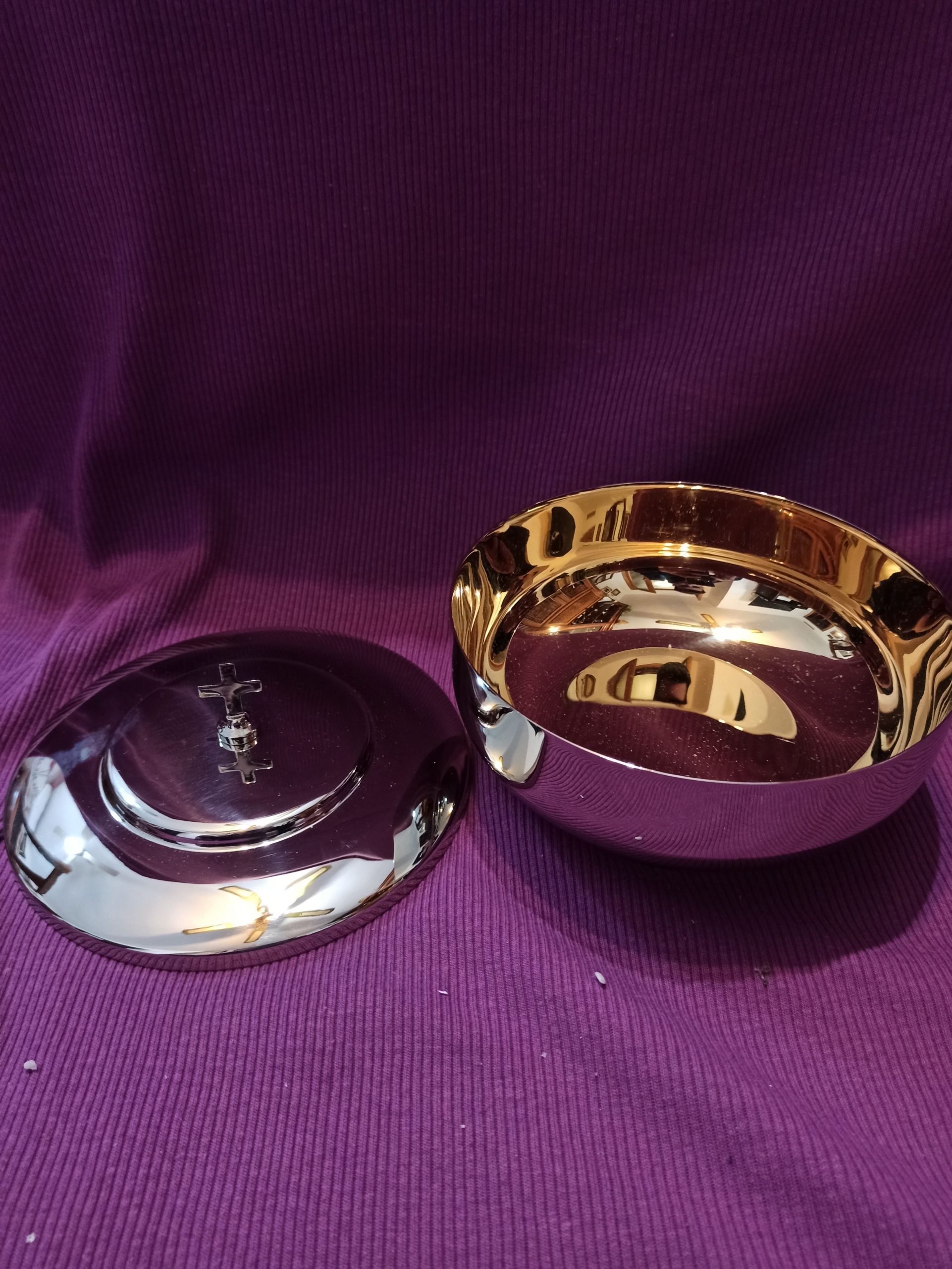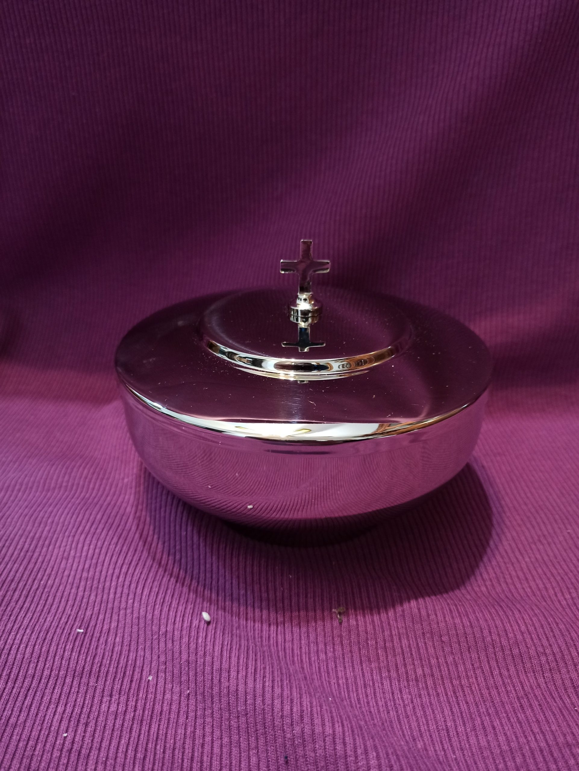 Copón cruzado plateado bajo de 15 cm alto x 10 cm profundo 9,9 cm ancho. Capacidad 1150 ml.