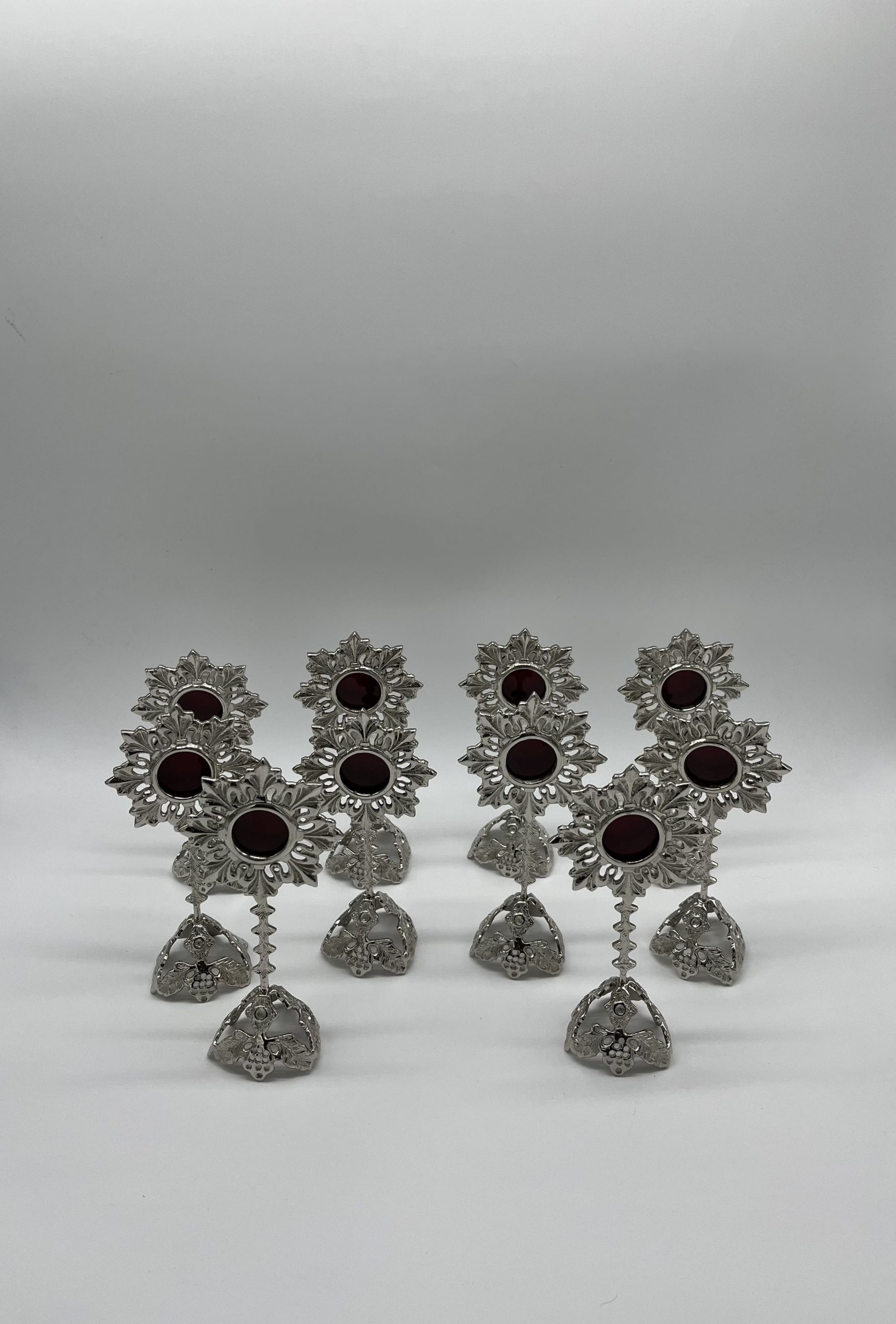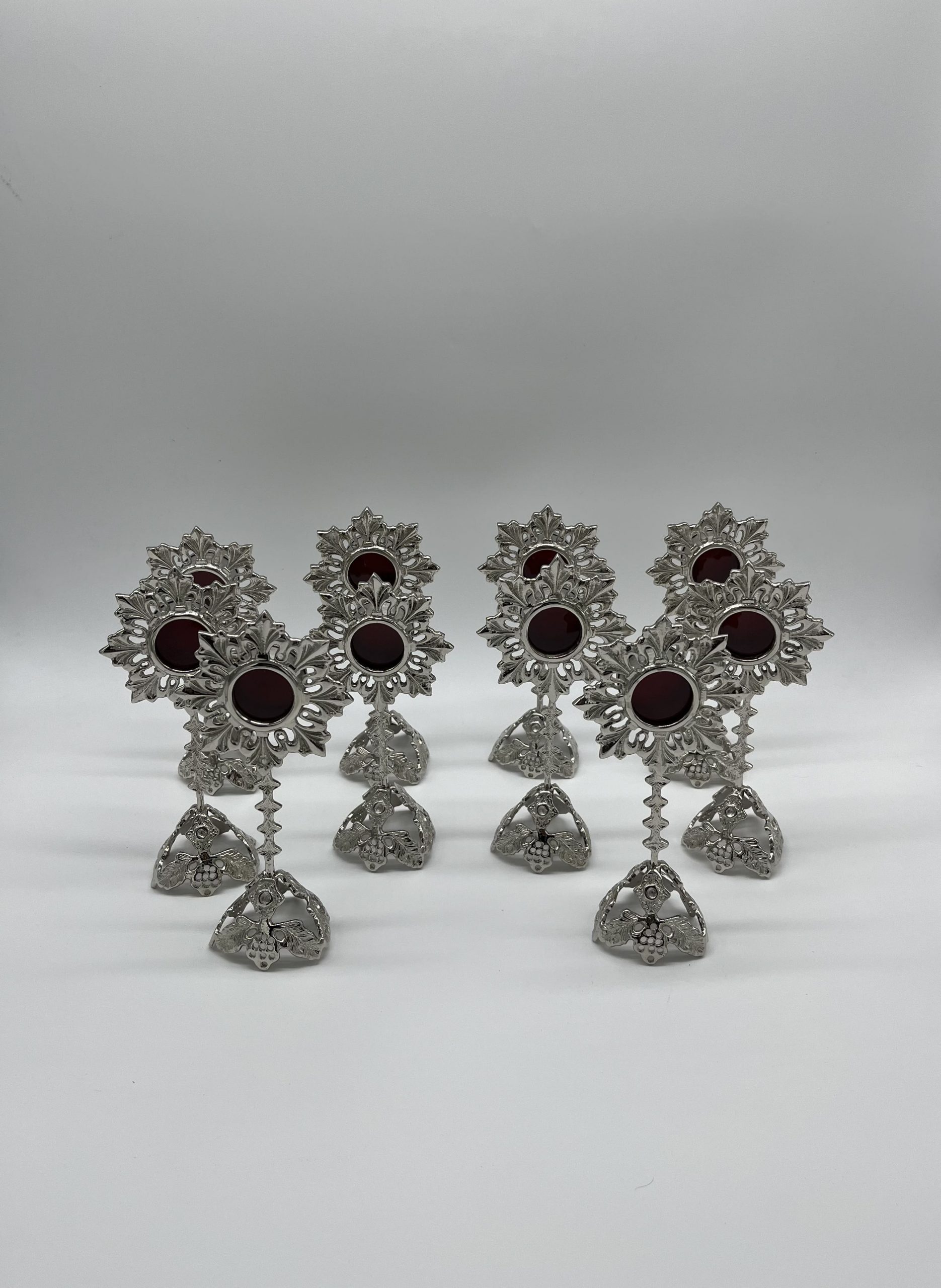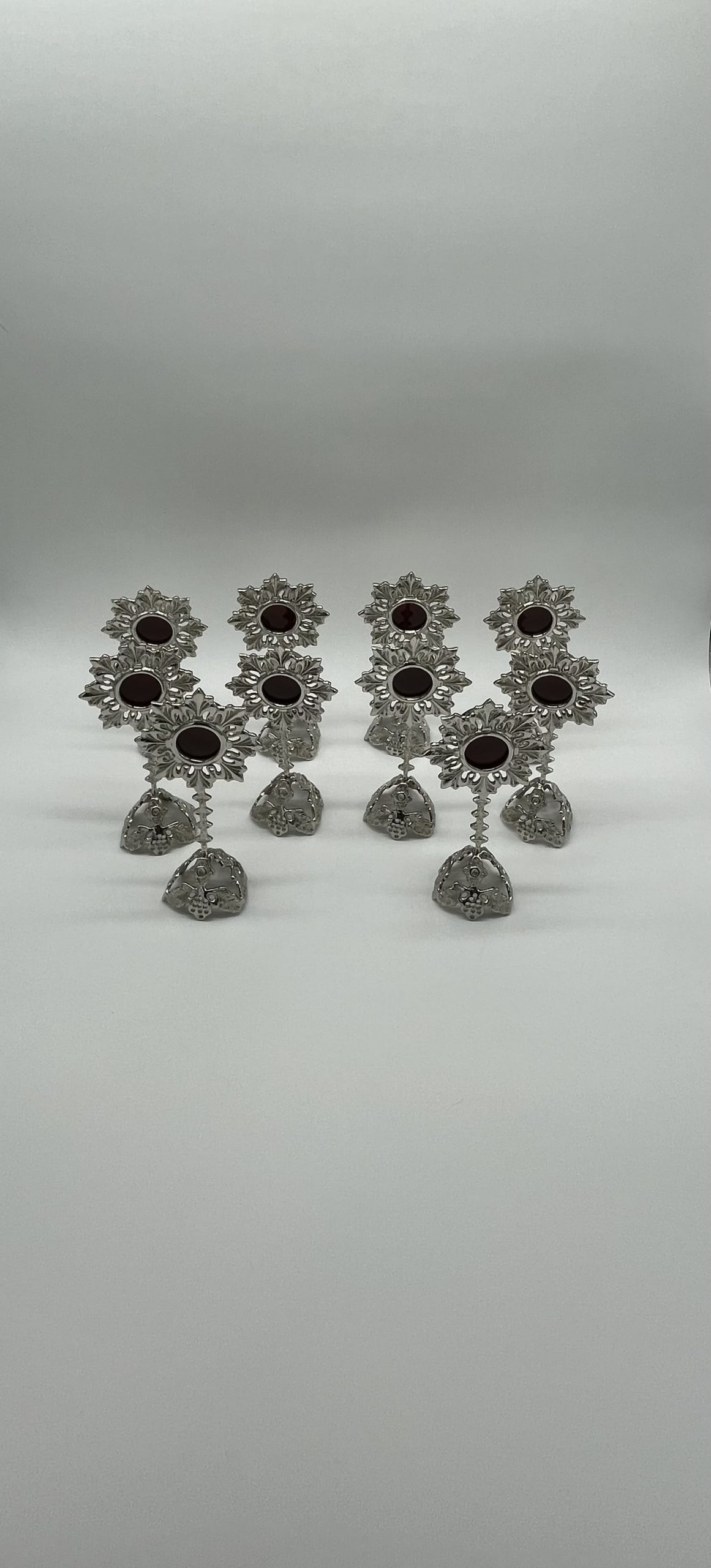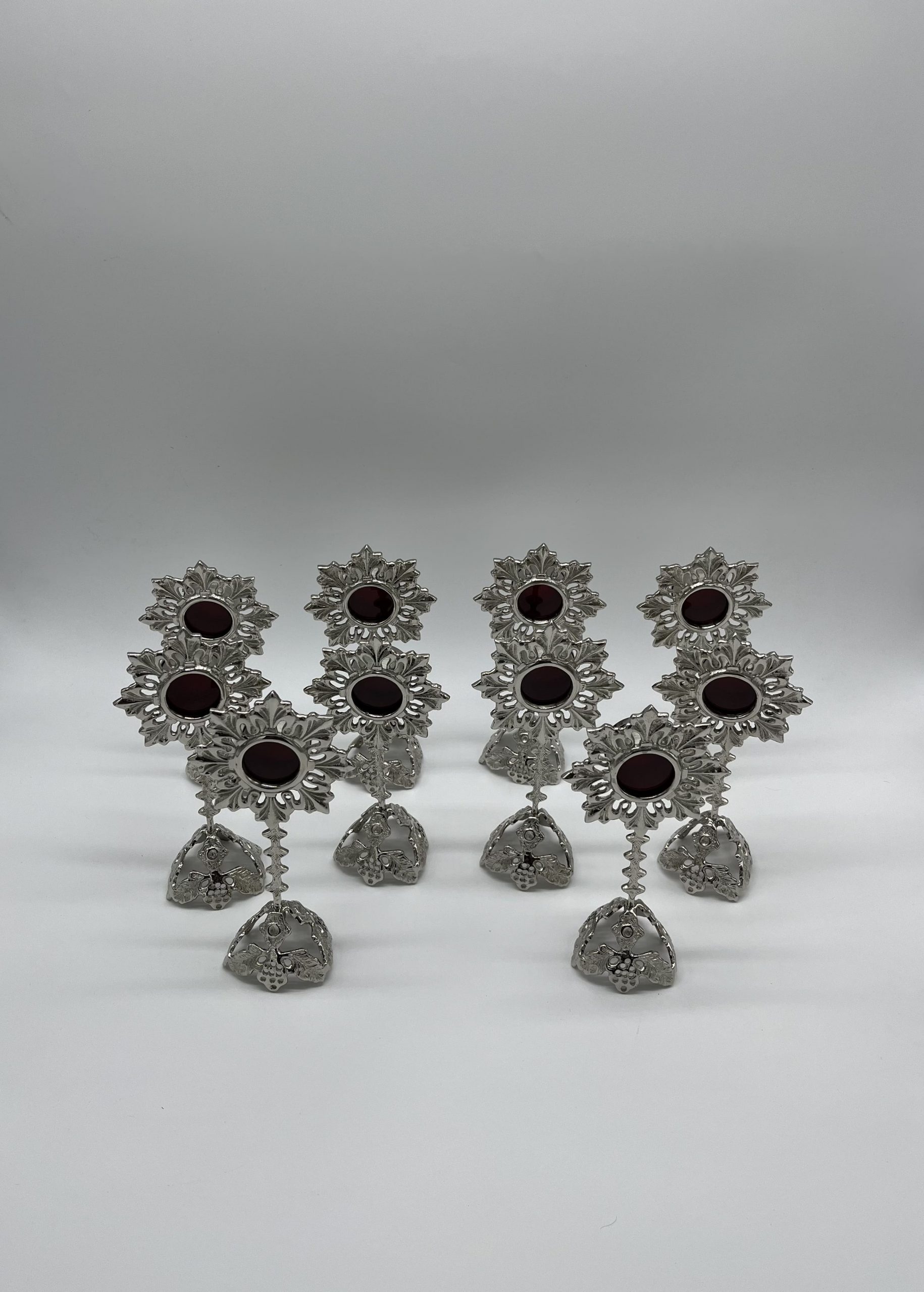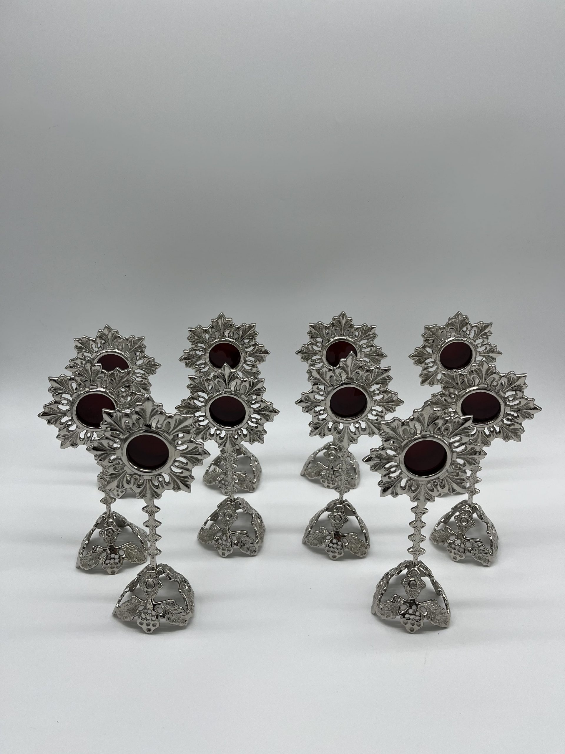 Lote de relicarios plateados (10 unidades) de latón plateados para la veneración de reliquias de Santos .Cada lote de relicarios tiene una altura aproximada de 20 cm , muy sólidos , con cristal y tapa forrada en terciopelo para enmarcar la reliquia. reliquias de 4,8 cm (profundidad) x 2,3 cm (profundidad)