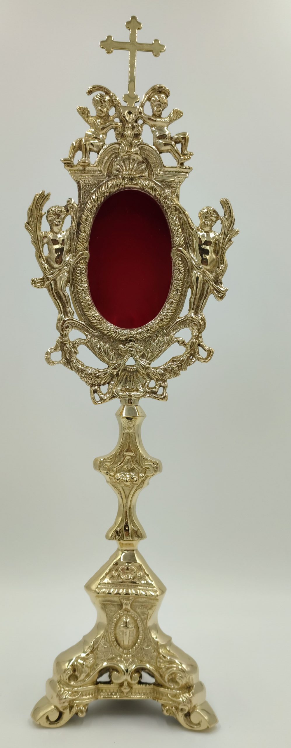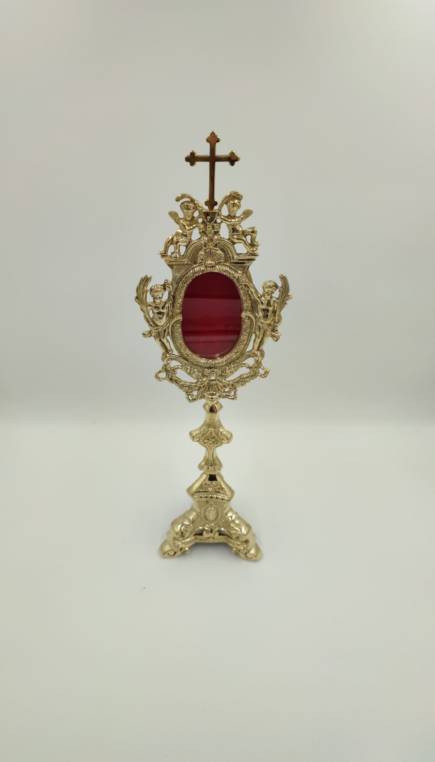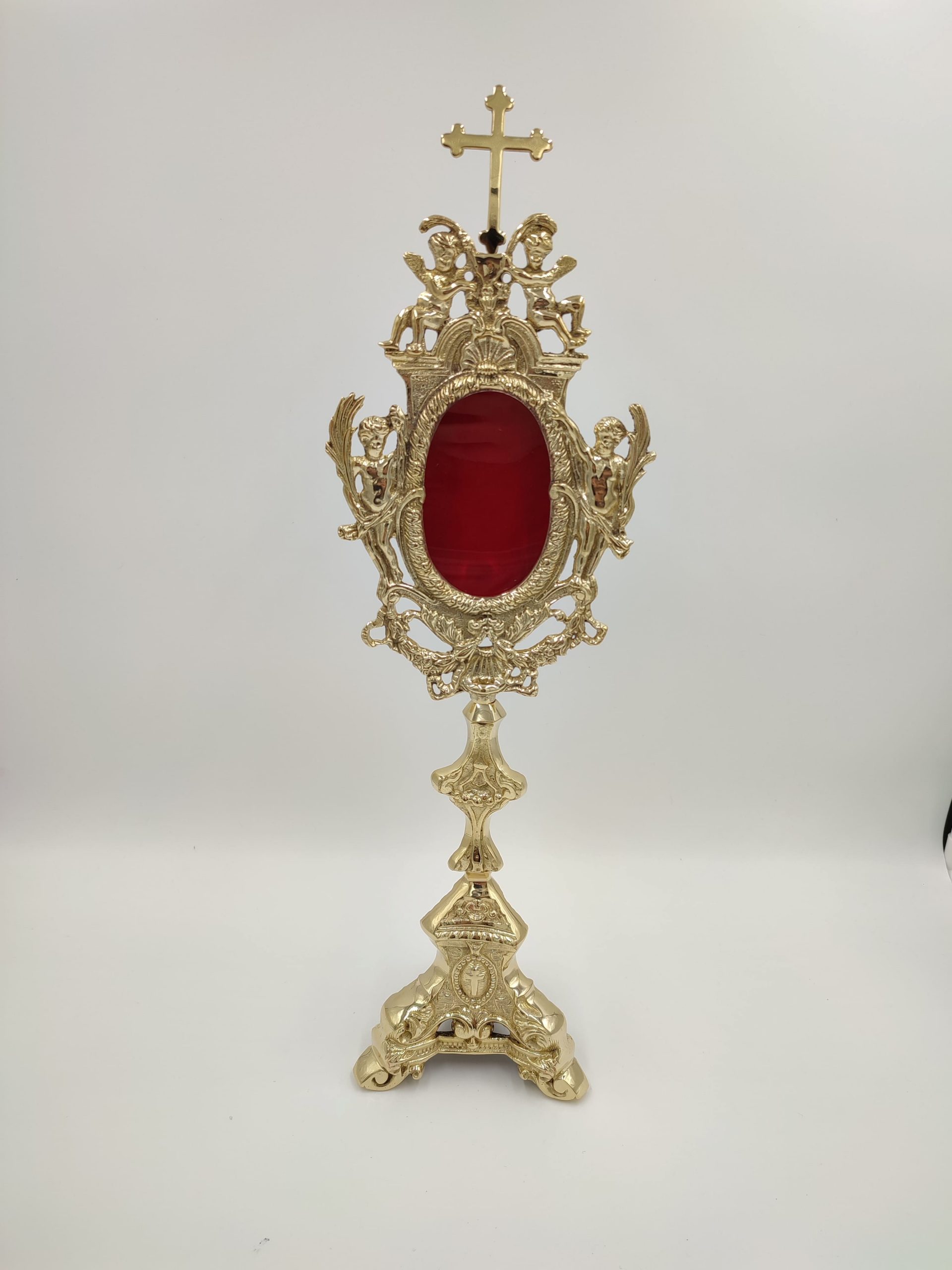 Relicario ángeles de latón con diseños muy hermosos las medidas son 53 cm de alto x 16 cm de ancho, porta reliquias 8 cm de ancho x 12 cm de largo y la base 14 cm de esquina a esquina. Disponible en varios acabado; este modelo el de alto pulido. A juego estuche.